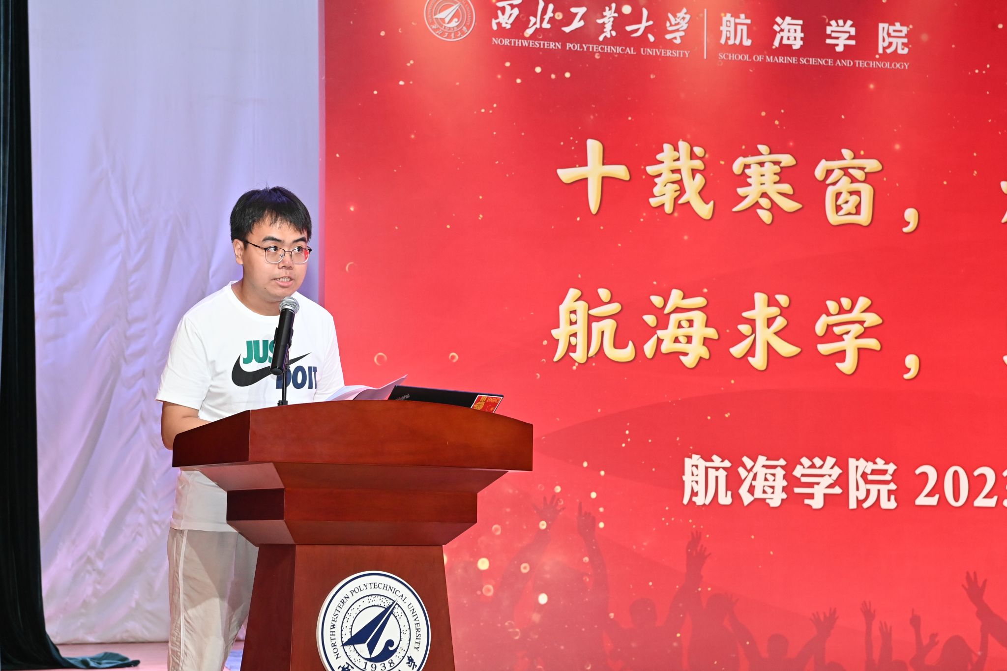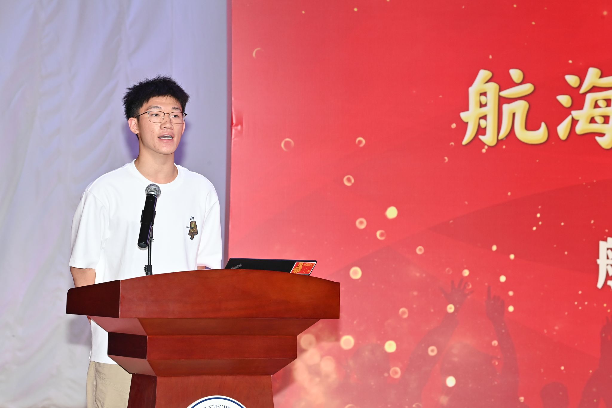 随后,本科生代表柏烨轩和研究生代表赵俊发言。他们讲述了自己的理想抱负,表达了进入海院大家庭的激动心情。并呼吁同学们秉承弘扬“公诚勇毅”“三实一新”校风校训,为国铸剑,任重道远,为祖国的锦绣江河义不容辞。