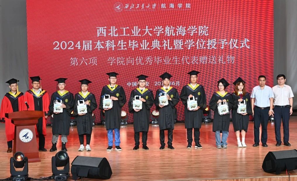 向优秀毕业生代表赠送礼物,祝同学们前途似锦。