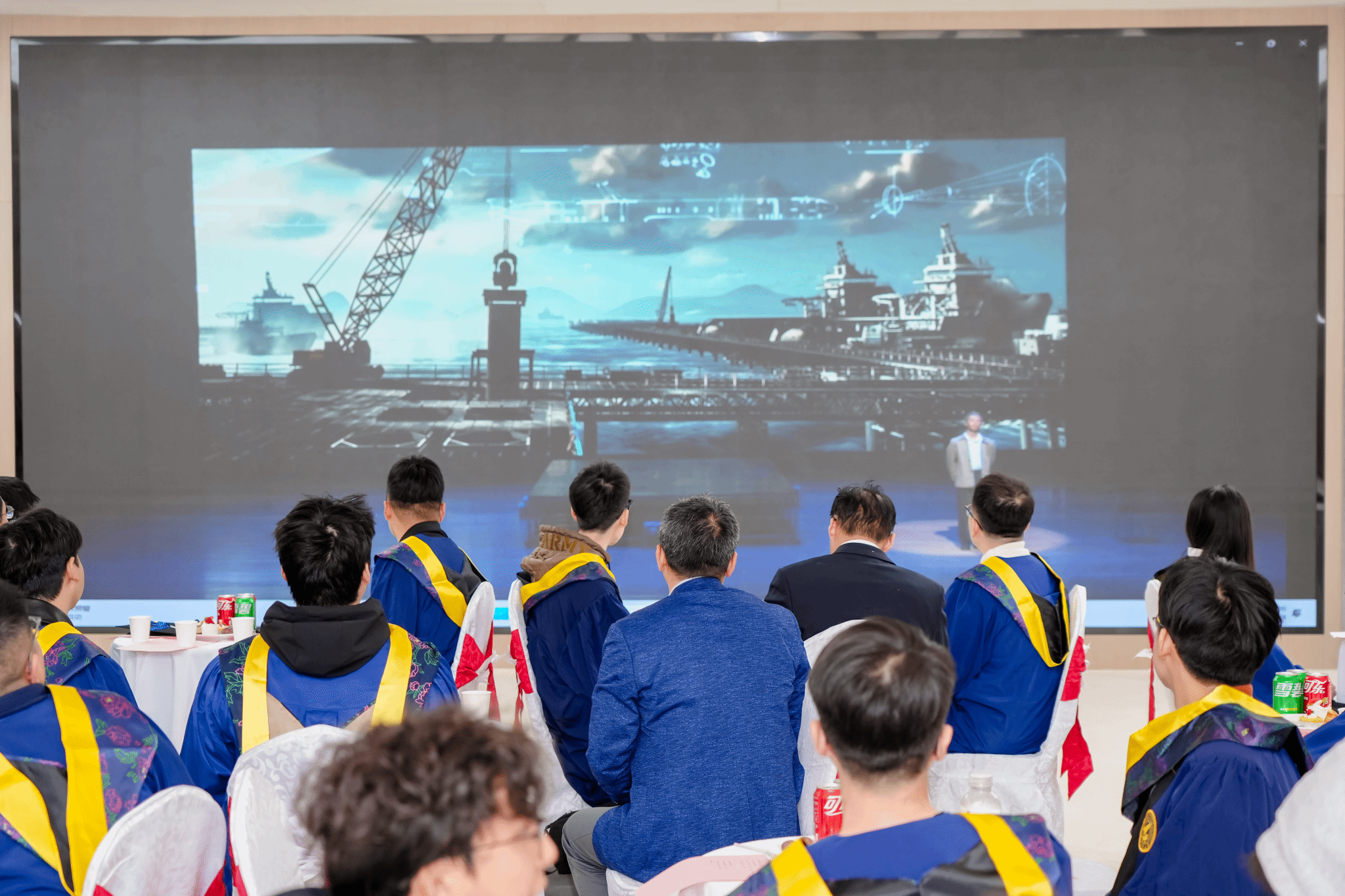 刘朝亚书记为全体优秀毕业生们讲授离校前最后一节党课,并和同学们共同观看了话剧《大国之蓝》片段“最后一次海试”。他鼓励同学们不断发扬“敢为人先、攻坚克难、团结协作、无私奉献”的航海精神,为海洋强国建设奉献青春力量。