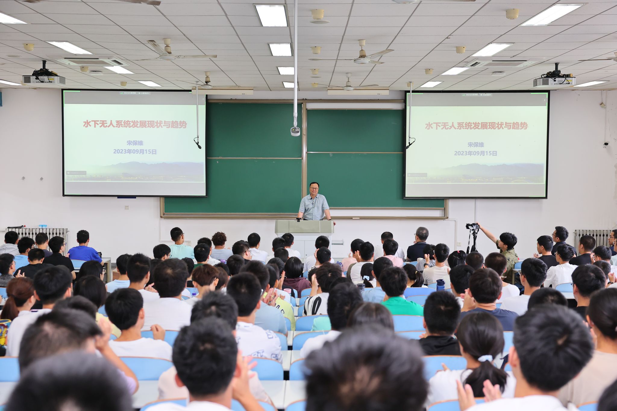 校长宋保维教授受邀走进课堂,以《水下无人系统发展现状与趋势》为题,为广大新生学子讲授《走向深蓝》第一课。