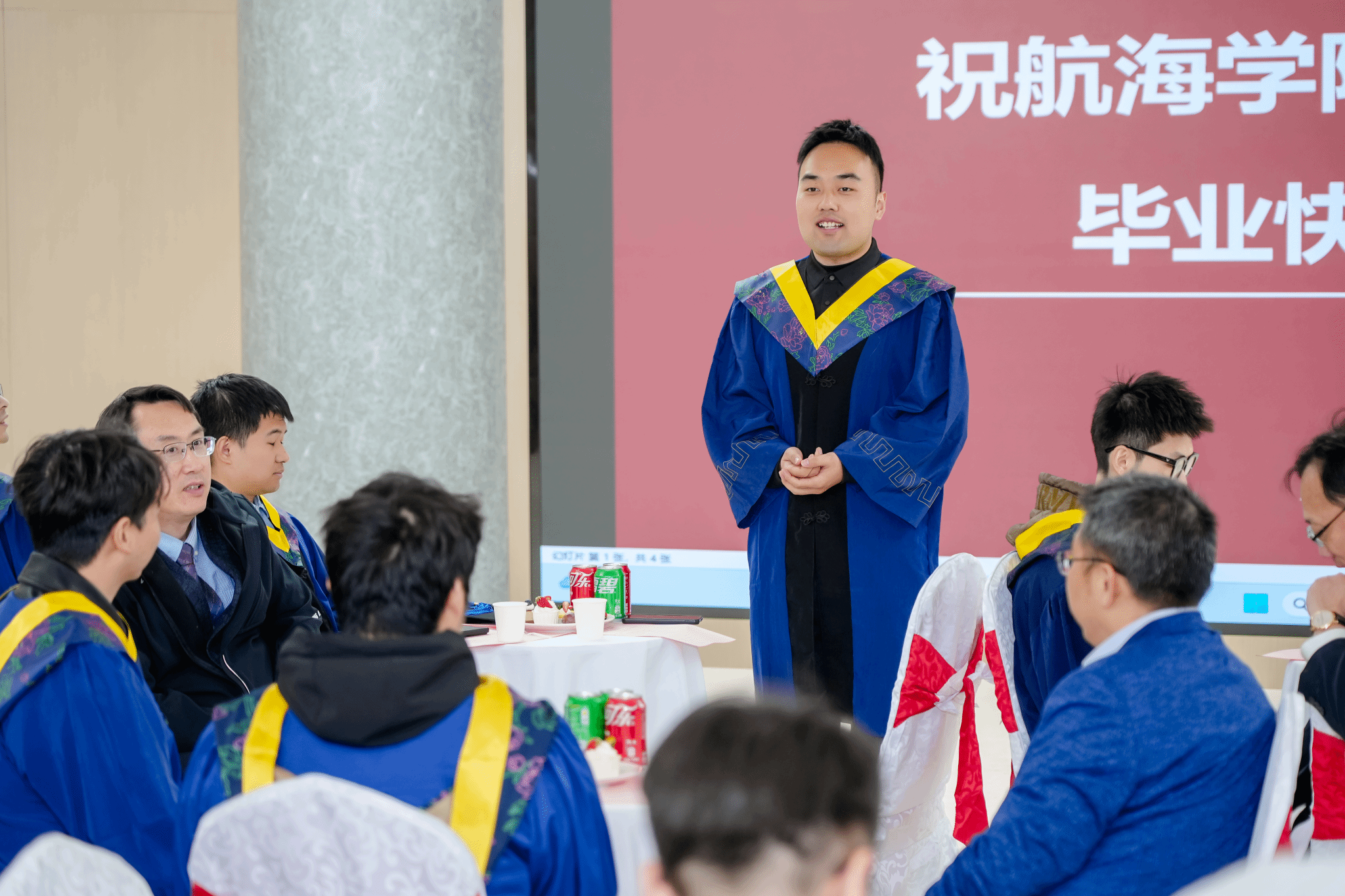 领导和导师代表为毕业生拨穗正冠,颁发证书并合影留念。