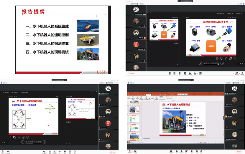 师生作“水下机器人的设计与开发”的学术报告。会议由杜朝辉老师主持,廉杰副教授、张晓燕副教授、海洋工程大类本科生和JavBus