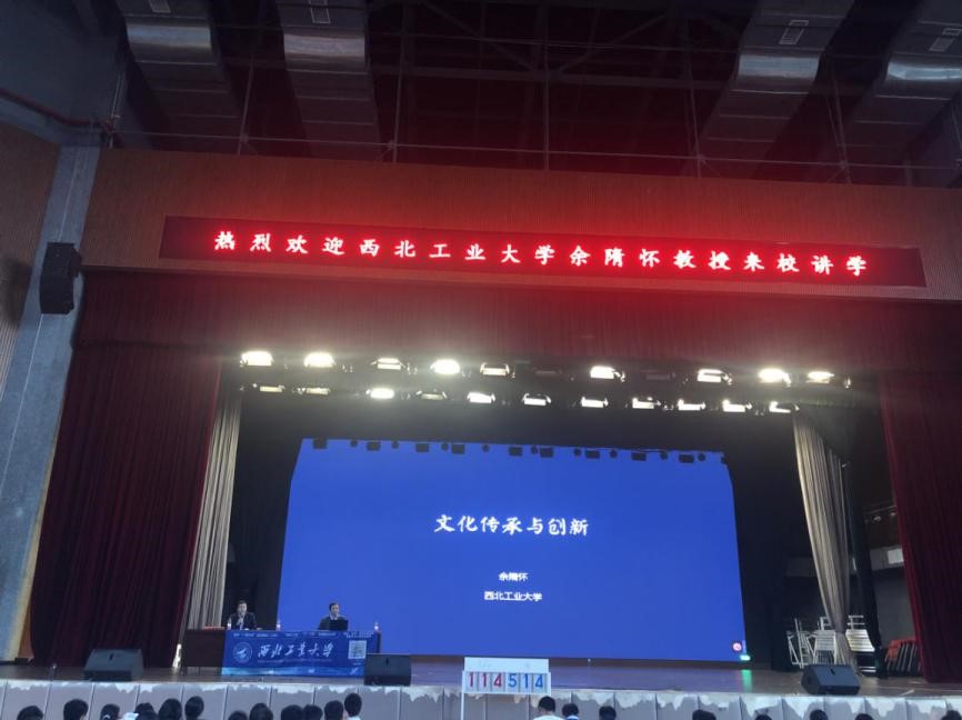 随后,余隋怀教授做了题为《文化传承与创新》的讲座。余隋怀教授以古代文物、诗乐、艺术作品以及服饰建筑等为主线,为潇湘学子带来了一场精彩的视听盛宴。他的讲座内容丰富有趣,语言幽默风趣,他还精选了经典音乐,让人如临其境。余老师展示了一位理工科男深厚文化底蕴的独特魅力,讲座融入文化、历史、建筑、雕塑、设计、科技、美学、音乐、考古、法律等多种元素。