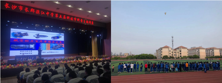 3月25日下午,湖南师范大学附属中学第34届校园科技节开幕式暨科普讲座进校园,王掩刚做客惟一大讲坛,高一年级上千名学生聆听讲座,王教授讲述的一个个生动风趣的飞天小故事,丰富了与会同学的航空知识,激发了同学们对航天事业的热情,与会师生踊跃发言提问,积极与王教授交流互动,对于大家的提问,王掩刚教授一一进行了详细的解答。讲座后高一年级集体观看航模表演。
