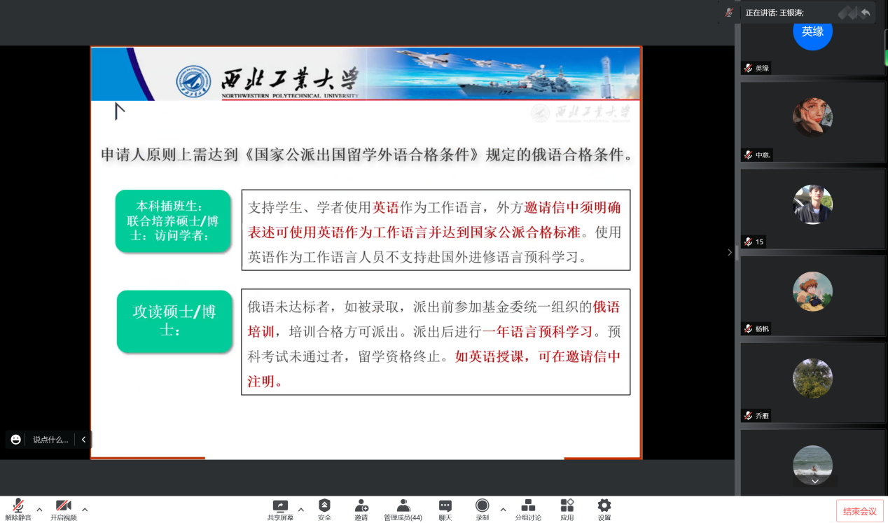 “国家留学基金委-赴俄罗斯国立海洋技术大学、俄罗斯远东联邦大学公派项目” 线上宣讲会于7月11日上午在线召开。