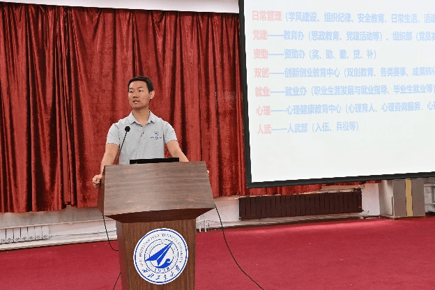 党委书记孙华强、党委副书记王银涛、副院长雷波、院长助理耿云辉,教学部主任、院办代表、全体新任辅导员及班主任、往届辅导员代表等出席会议,会议由王银涛主持。