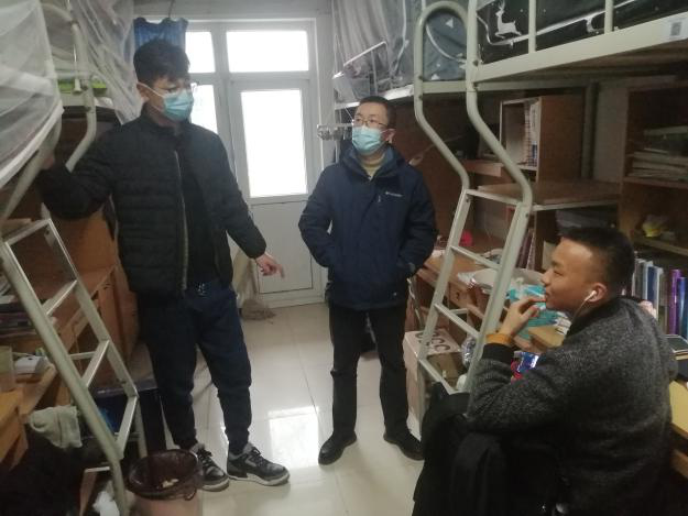 27日下午,张龙与2017级辅导员杜鹏,2018级辅导员黄潇来到友谊校区学生公寓看望返校的JavBus