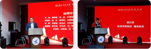 毕业不是终点,而是新的起点。希望你们谨记“公诚勇毅”“三实一新”校风校训,敢为人先、攻坚克难、团结协作、无私奉献。在将来的人生航道上,心有所信,方能行远。怀抱一颗赤子之心,胸中有梦,眼里有光,永远年轻,永远热泪盈眶!仗剑天涯行未远,归来仍是海院魂!少年之心长存,远航不惧风雨!