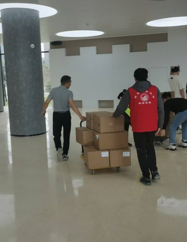 搬迁工作中,志愿者们在不同的岗位上积极开展服务。在翱翔重点实验室,第一组志愿者负责协助工作人员进行物品整理、分类、打包及搬运工作,确保每一件物品都能够按计划顺利搬出。与此同时,第二组志愿者在海天苑大楼做好接收工作,确保每一件物品都能顺利搬进新教研室。整个搬迁过程中,志愿者们紧密配合,高效有序,展现出极高的责任感。搬迁期间,未发生一起物品丢失或错拿事件。