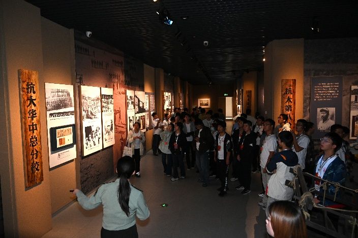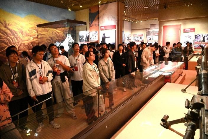 寻根抗大铸魂地,砥砺报国赤子心。 当师生走进中国人民抗日军事政治大学纪念馆,在庄严肃穆的氛围中将实践学习引向深入。跟随着“抗大创建与发展”“抗大精神永放光芒”两条主题展线,泛黄的文献、斑驳的武器与珍贵的历史照片次第呈现,无声诉说着那段艰苦卓绝却又热血激昂的办学岁月。“坚定正确的政治方向,艰苦朴素的工作作风,灵活机动的战略战术”的抗大精神,穿越时空,鲜活地呈现在师生面前,带来深深的思想震撼。大家纷纷表示,要将这份“越是艰险越向前”的斗争精神和求真务实的学风带回校园、融入科研,为建设海洋强国贡献新时代“抗大式”的智慧与力量。