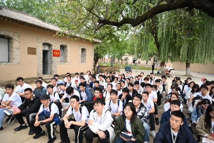 寻迹红色热土,感悟精神伟力。 9月27日中午,实践团队顺利抵达延安,在这片孕育中国革命的圣地上,开启了沉浸式红色探访之旅。首站杨家岭革命旧址中,中央大礼堂在苍松翠柏的环抱间巍然矗立,礼堂内陈设如旧,仿佛仍在回响着中共七大时指引方向的历史强音。随后,师生们走进毛泽东、朱德等老一辈革命家曾经居住的窑洞,目睹简朴至极的生活用具,真切感受到艰苦岁月里共产党人那份坚定的理想信念与“自力更生、艰苦奋斗”的崇高精神,大家对延安精神的内涵有了更为深刻和具象的理解。