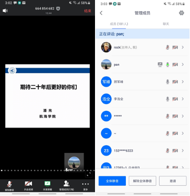 2020届研究生毕业生们在工大的最后一课在线上准时开讲,潘光院长受邀担任主讲教师,主讲题目为《期待20年后更好的你们》,孙华强书记、张龙助理等人参加了课程,课程由王银涛副书记主持。