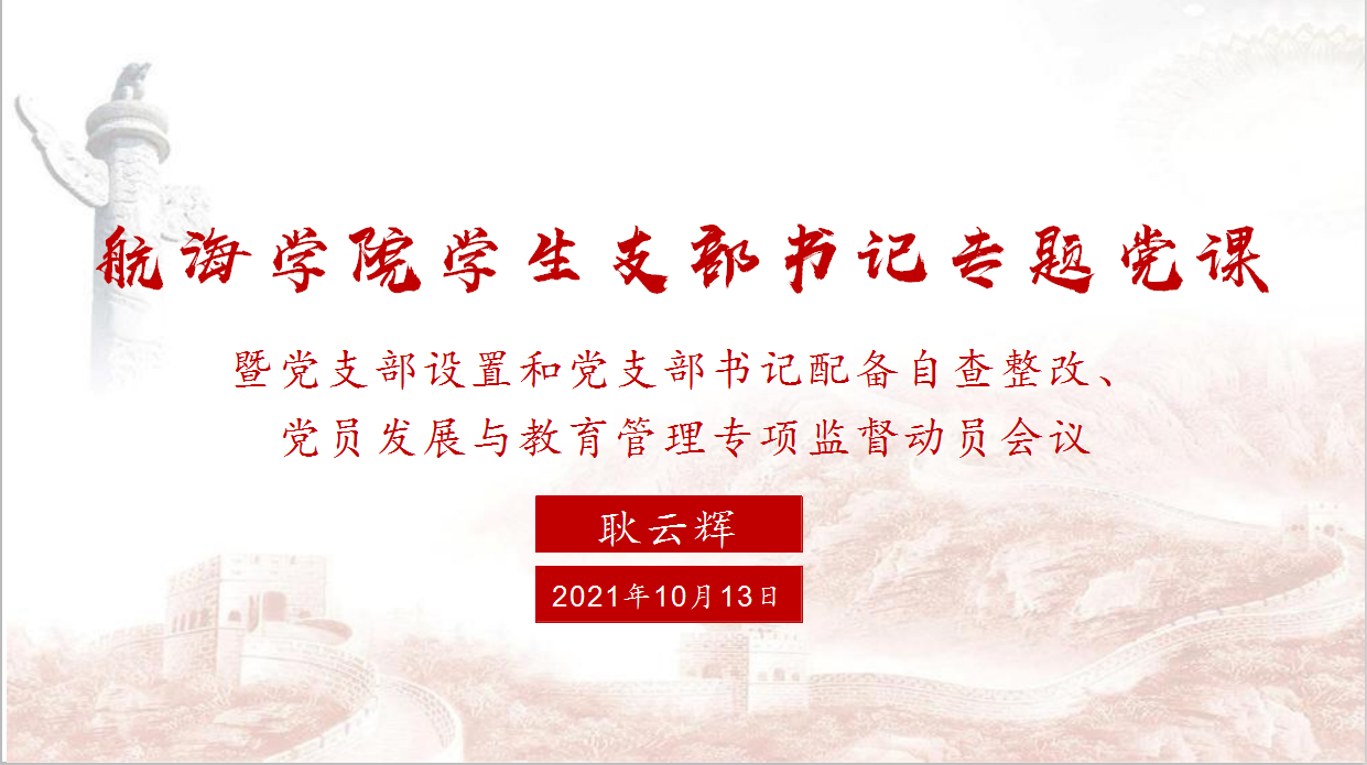 耿云辉结合自身工作经历和学习体会,以微党课的形式,从党员的责任与义务、党的基层组织建设等角度,向与会同志分享了推进学生党支部建设的重要意义和工作思路,强调各学生党支部书记要坚定理想信念,充分调动支部党员积极性,严格按照党章等党内法规要求,扎实开展支部支委选举以及党员发展和教育自查工作。
