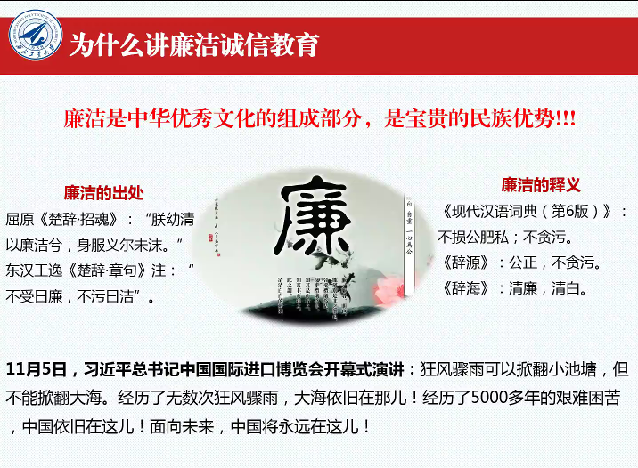 廉洁诚信教育的意义,在于提高学生的道德修养,使同学们形成自我道德约束力,将廉洁与诚信的品德内化于心,外化于行。本次廉洁诚信教育课为同学们划出一条道德和行为底线,希望同学们谨记于心,在日后的学习、生活中不断提高自律意识,坚守好初心,为国家发展、社会进步做出积极的贡献。