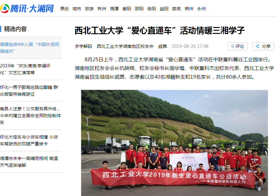 从三湘之滨到秦川之地,是千里的相隔,我们用爱一路前行。活动时间虽短,但在每个新生心里都会留下一道深深的烙印。座谈会上老校友的成长故事到实业报国的工匠精神,从色香味俱全的美味佳肴到欢声笑语的旅途,这些都将是每一位新生的美好回忆。本活动不仅服务了学生,而且凝聚了校友,使校友们有机会反哺母校,共传关爱,资赠育人,传承爱心。