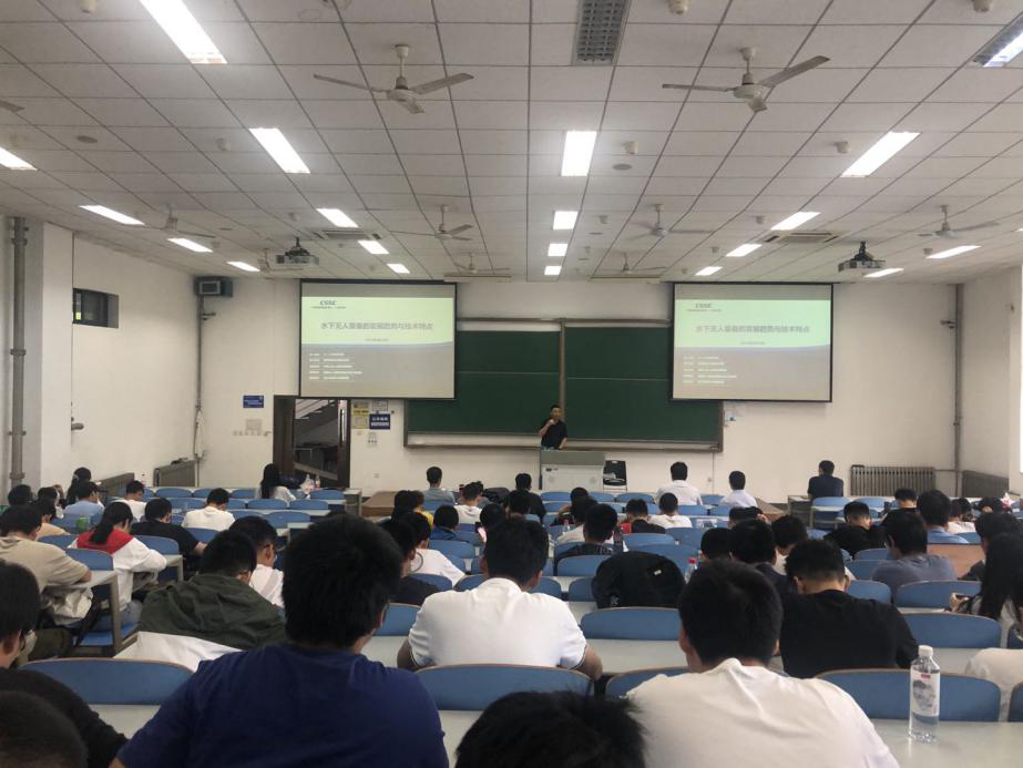 讲课伊始,王所长介绍了中国船舶集团公司第七一〇研究所的基本情况。随后,他梳理了美军体系作战概念演进进程,分析了未来海上作战发展趋势,讲述了美海上无人装备发展概况,重点描述了我国无人装备发展重大意义及趋势。接着,他介绍了清江创新中心的基本情况、研究方向、建设目标等。最后,王所长鼓励同学们要关注前沿和热门的技术,早点规划未来的学习方向。