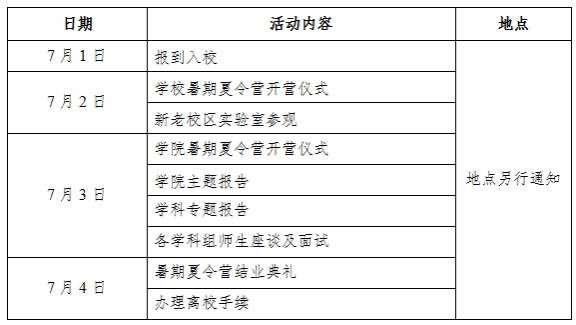 学生在系统上收到入营通知后,需确认是否参加,未按时进行确认的视为放弃,入营学员须全程参加夏令营各项活动。