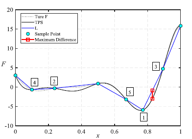 用两种径向基函数来模拟代理模型误差最大处仿真图