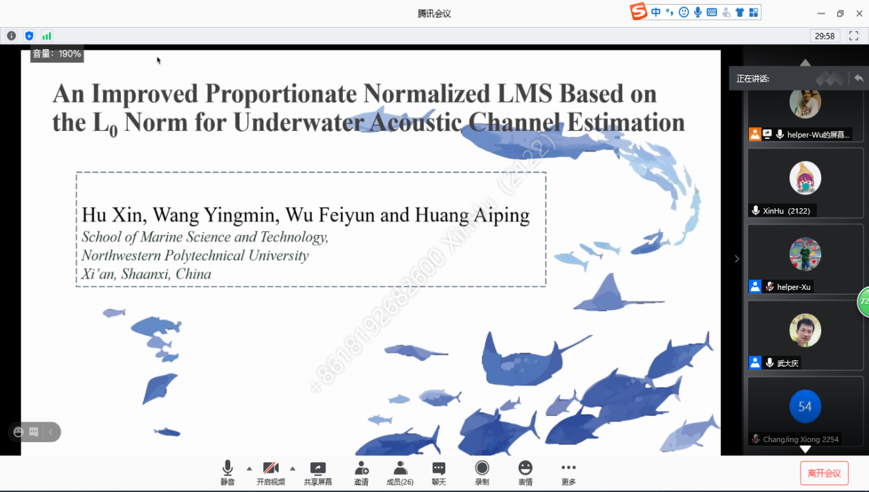 2020年,JavBus 克服国际疫情的严重影响,积极推动线上国际交流工作开展。在研究生赴国(境)外交流学习专项资金资助下,共组织36名学生参加了IEEE海洋学会议、IEEE进化计算会议、国际噪声控制工程大会、IEEE国际信号处理、通信和计算会议等高水平国际学术会议并做口头学术报告,充分展示海院学子扎实的科研能力、开阔的国际视野与关注学术前沿问题和国际最新研究成果的科研意识。