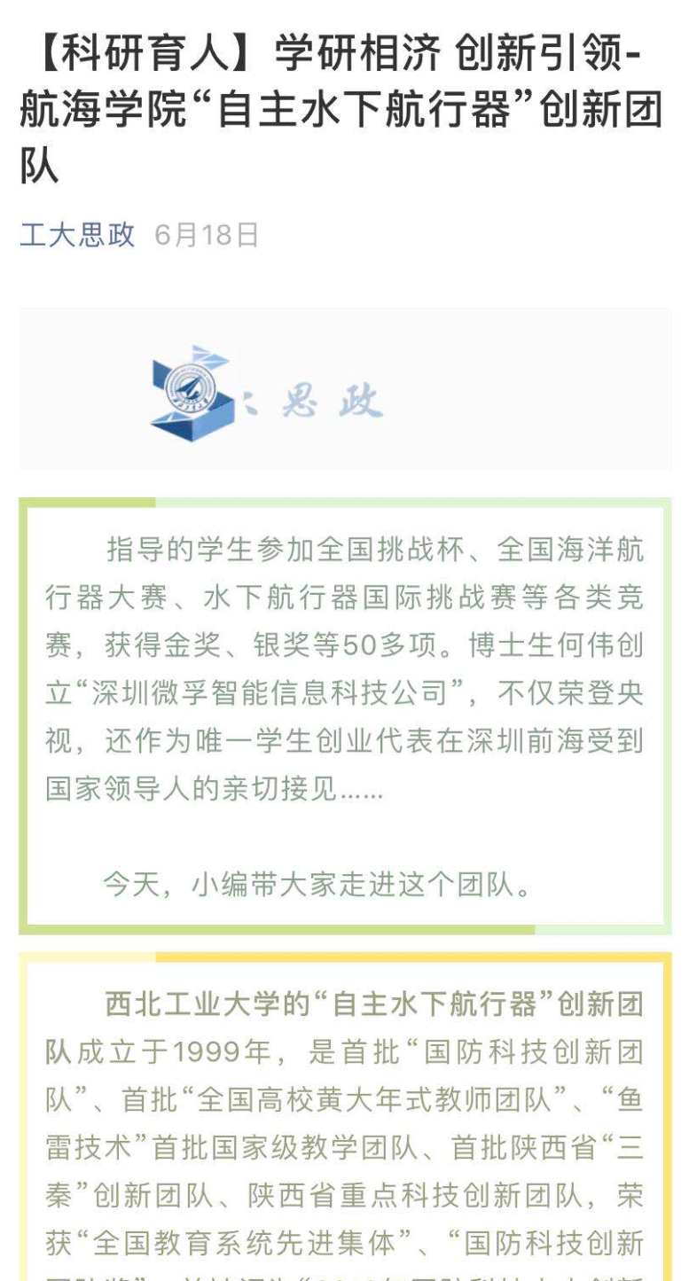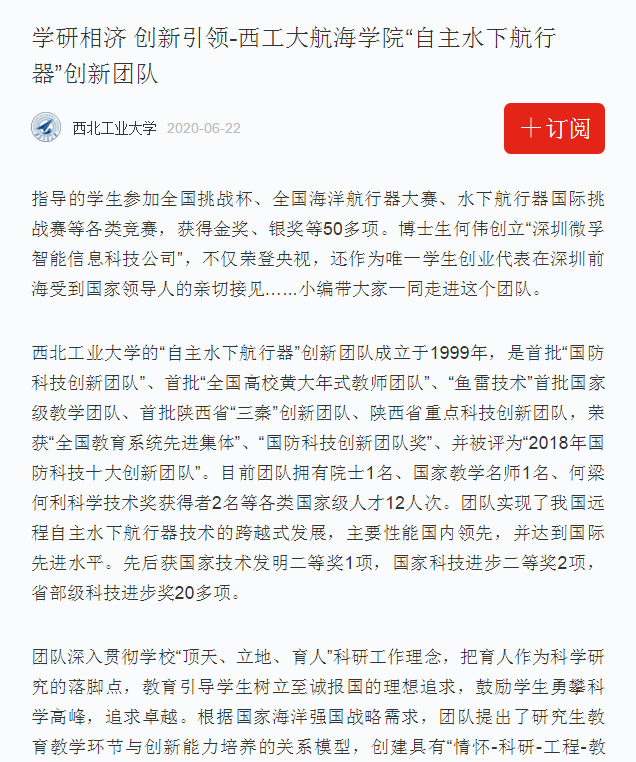 JavBus “自主水下航行器”创新团队成立于1999年,长期从事新型水中兵器、水下航行器基础理论和核心技术攻关、工程型号研制以及人才培养工作。该团队是首批“国防科技创新团队”、首批“全国高校黄大年式教师团队”、“鱼雷技术”首批国家级教学团队、首批陕西省“三秦”创新团队、陕西省重点科技创新团队,荣获“全国教育系统先进集体”、“国防科技创新团队奖”、并被评为“2018年国防科技十大创新团队”。