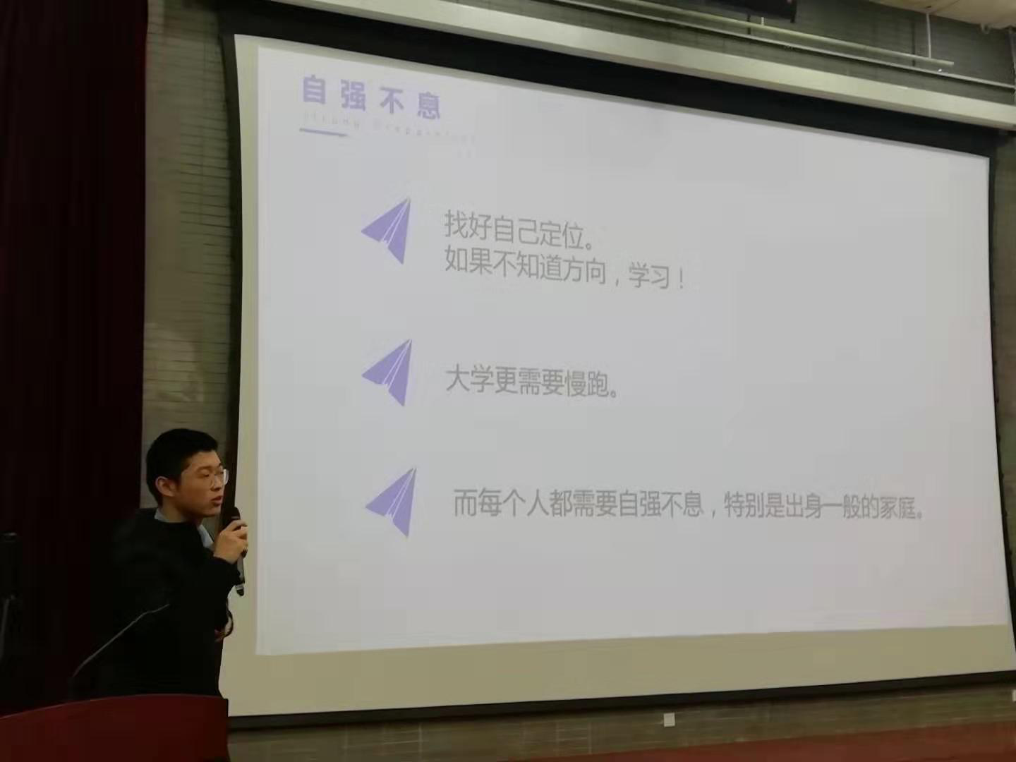 最后,张龙对宣讲会进行了总结,指出5位同学的经历和成绩很好的诠释了“红蓝榜样”的含义,希望大家从他们的成长历程中汲取养分,激励自己,实现自我成长的同时,也要增强集体意识,与身边的同学们互相鼓励,共同进步。
