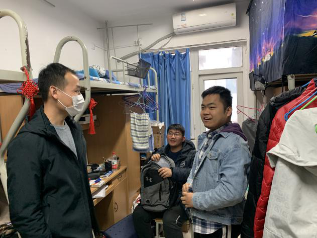 27日下午,张龙与2017级辅导员杜鹏,2018级辅导员黄潇来到友谊校区学生公寓看望返校的JavBus