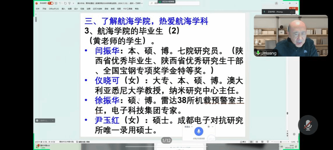的历史底蕴和黄震中老院长的传奇人生有了更为深刻的认识,也为他们的大学生涯和未来规划指明了方向。黄建国老师的讲座,不仅是一次知识的传递,更是一次心灵的启迪,激励着每一位新生勇攀高峰,立志成为总师型人才,为我国的航海事业添砖加瓦、贡献力量。