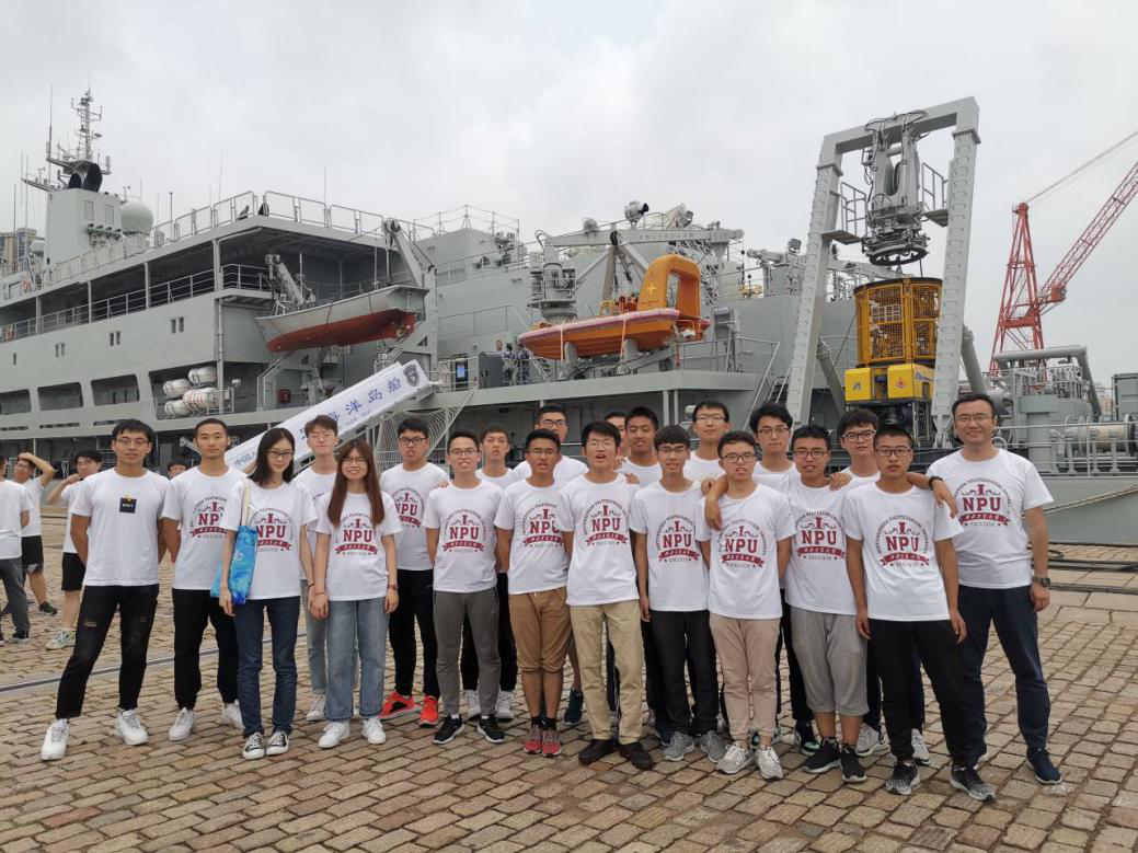 、某海军航空兵支队、某驱逐舰支队、鱼水雷仓库、某防险救生支队、某潜艇支队、西工大青岛研究院、中国华录集团有限公司、海军航空大学青岛校区、某作战支援支队,与北海舰队官兵及相关引导人员积极交流,询问相关武器装备和所学专业知识的实际应用。对比往年实习,今年实习内容更为丰富,同学们不仅见识到了大量舰艇齐聚海岸的壮观场景,还登上了四艘舰船,三艘现役潜艇,目睹了“辽宁号”航母真容。同时,此次实习还新增了青岛研究院与华录集团参观点,让学生近距离接触科研前线、科研成果转化以及大数据的收集与应用,更加全面的感受专业知识的多元应用与学科的交叉融合,不拘泥于传统学科方向,拓宽今后科研与就业的道路。一路上,教师始终与学生一起乘车,一起登上舰艇,一起交流,一起合影留念,关心学生身体状况及生活情况,与学生建立起了深厚的感情。