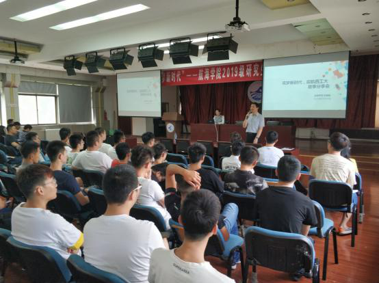 崔荣鑫副院长在教学西馆102教室为海院全体研究生新生开展专业认知教育第一课。