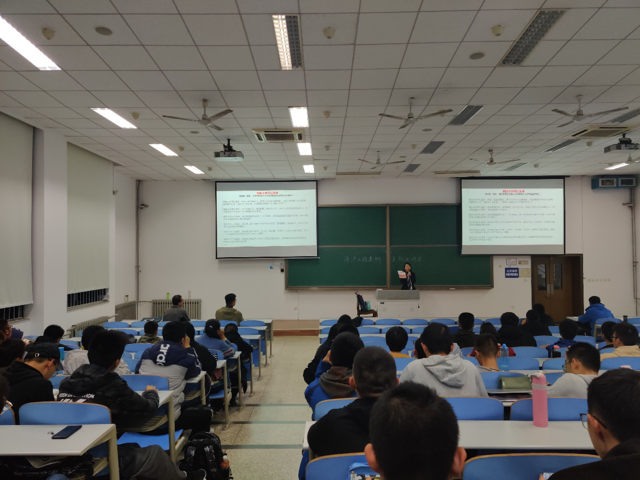 院长助理张龙老师、2019级本科生辅导员王士刚老师以及海洋工程类新生参加了本次讲座。