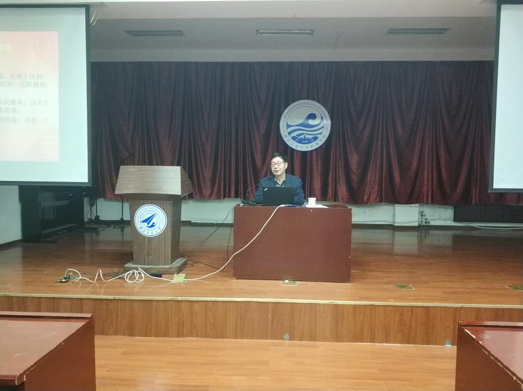 随后,王育才教授为到场的入党积极分子们上了一堂生动且深刻的党课——《践行宗旨 担当使命》。王教授引用了3个不同时代党员践行初心使命的故事,为大家阐述了中国共产党的宗旨,引发了同学们强烈的共鸣。随后,他结合党史为大家系统详细地介绍了党的宗旨确立与发展的过程,使同学们对党的宗旨有了更深刻的认识。最后,王教授告诫同学们:践行党的宗旨是党员的终身课题,勉励大家要自觉践行为人民服务的宗旨,在日常学习生活中要做到:加强学习,坚定理想信念;自省自律,保持思想纯洁;刻苦钻研,历练过硬能力;重视日常实践,养成为人民服务习惯。