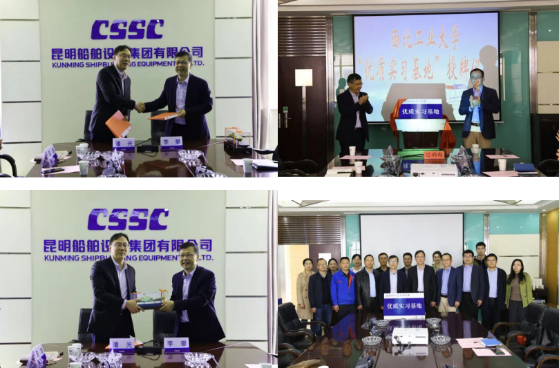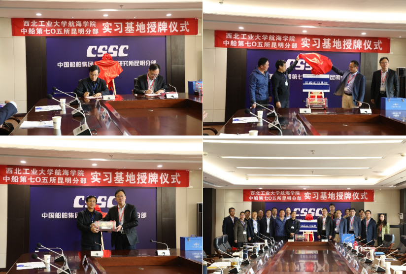 院长潘光带队赴昆明先后与中国船舶集团705所昆明分部、中国船舶集团750试验场和昆明船舶设备集团有限公司三家行业内单位举行实习基地签约授牌仪式。