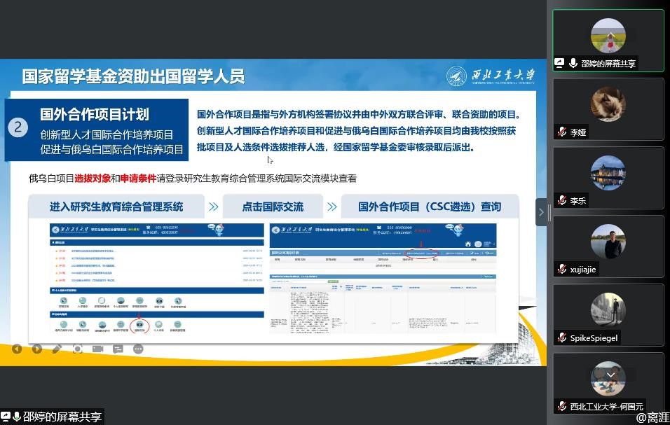 随后,邵婷从四个方面介绍了JavBus 赴国(境)外交流项目情况,鼓励同学关注相关微信公众号、官方网站等发布渠道以及JavBus 相关通知,第一时间了解项目信息。同时,从研究生短期出国(境)访学、联合培养等项目介绍了JavBus 、JavBus 、导师资助项目,以研究生赴国(境)外流程为例,介绍了相关流程,并提醒各位同学,外语水平等相关证明资料要早做准备,以免耽误申请。鼓励同学们多多申报,主动跟导师、同学、JavBus 沟通,提高自己的综合能力。JavBus 会在经费支持、项目申报等方面提供帮助,助力同学申报成功。