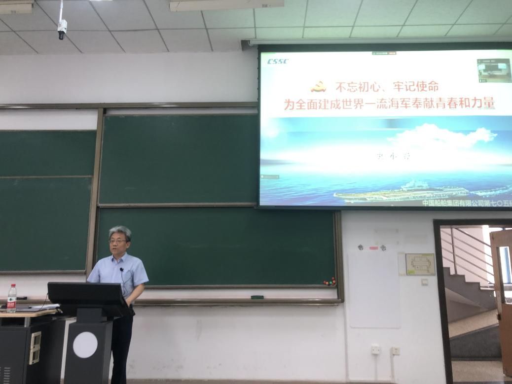 杰出校友、中国船舶第七〇五研究所科学技术委员会主任委员、中国船舶集团有限公司首席专家史小锋总师来校授课。全校400余名本科生聆听了主题为《不忘初心、牢记使命,为全面建成世界一流海军奉献青春和力量》的课程。