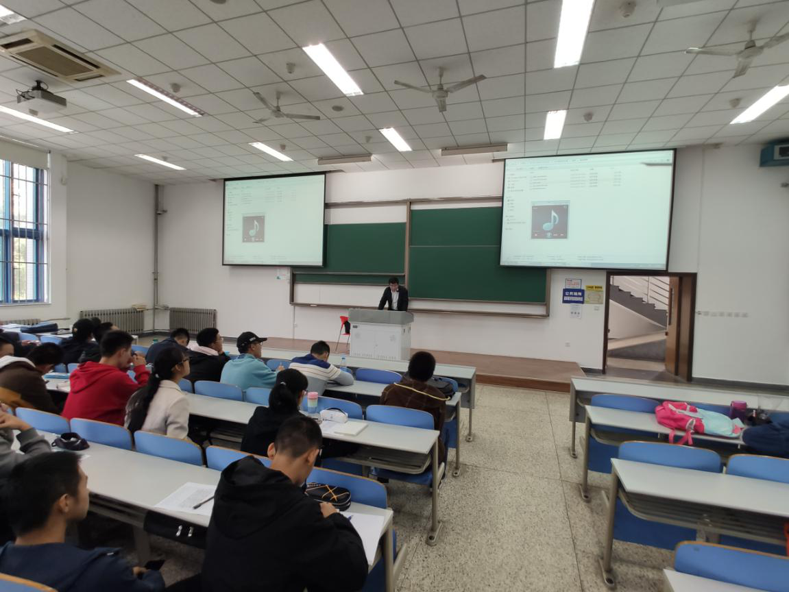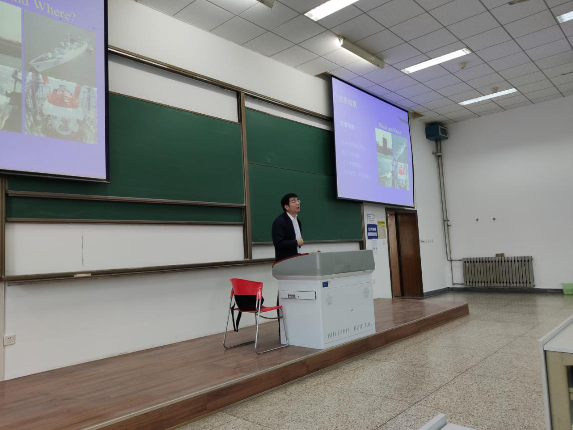 随后,曾老师基于多年的研究基础,重点介绍了水声信息对抗领域的一项瓶颈技术——水中目标自动识别技术。他首先介绍了水中目标识别在水声探测与对抗领域的重要地位,以及该技术在国防和民用领域的应用前景。然后,他从军事需求、基本原理、重要技术环节实现、国内外发展现状和趋势等方面进行了生动、详细的阐述,让同学们对这项紧密融合水声学、信号处理和人工智能的技术方向有了较全面的了解。